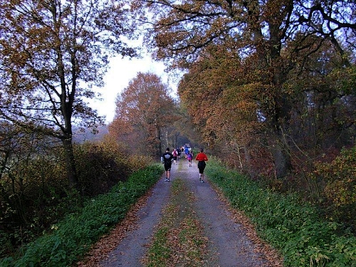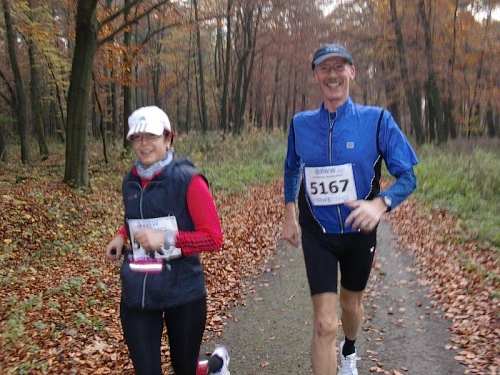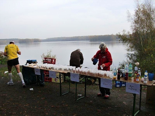 Jetzt sind nur noch die 50 km Läufer unterwegs und der Herbstwald gehört uns alleine. Bei unserem Tempo haben wir auch noch immer einen Blick für die Naturschönheiten. An der Pendelstrecke sehen wir noch die Konkurrenten direkt vor und hinter uns. 6,5 Stunden beträgt hier die Sollzeit, da gibt es also genügend Zeitpolster. Also können wir uns auch an den Verpflegungsständen in Ruhe umschauen. Für die Ultraläufer hat man nun noch Malzbier, Kekse, Rosinen und Schokolade im Angebot. Da bleibt kein Wunsch offen.