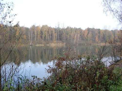 Der Kurs ist insgesamt leicht wellig und es geht nun ein wenig aufwärts. Nach weiteren 1,5 km kommen uns dann schon Läufer entgegen, denn hier ist eine ca. 250 Meter lange Pendelstrecke. Nach einer scharfen Kehre gibt es erneut eine Verpflegungsstelle und wir überqueren den Schwarzbach. Wieder muss eine längere Steigung bewältigt werden, der Wald ist hier als Biotop ausgewiesen und man darf die Wege nicht verlassen. Schon oft konnte ich hier in den Abend- und Morgenstunden Rehe beobachten. Am Ende des Weges gibt es ein abgeerntetes Maisfeld und in der Ferne kann ich den kleinen Flugplatz Schwarze Heide erkennen. Hier hat man auch eine Sanitätsstation platziert und wir biegen jetzt zum Heidhofsee ab. Die Seen sind bei der Kiesgewinnung entstanden und bieten eine ideale Umgebung für viele Tierarten.