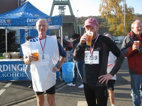 Jetzt im Ziel gibt es alles, was ein Läufer sich an Verpflegung wünscht. Auch alkoholfreies Bier ist dabei und ist sehr begehrt. Die Urkunde kann man sich hier sofort ausdrucken lassen. Das ist ja auch ein prima Service.