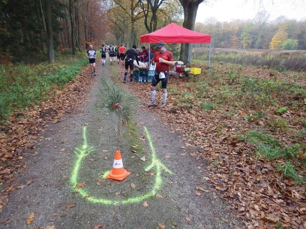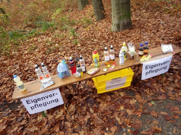 Nach der Überquerung des Rotbaches erreichen wir bei km 4 die erste von 4 Verpflegungsstellen, die auf der 25 km langen Runde eingerichtet sind. Richtig vermutet, wir laufen die Runde zweimal.
