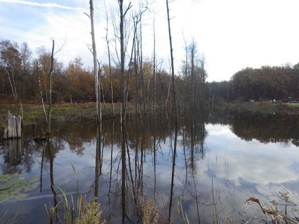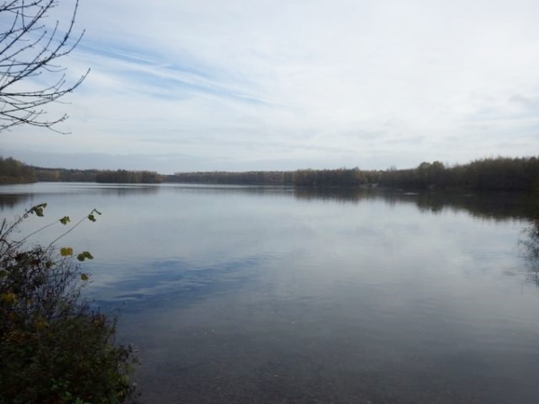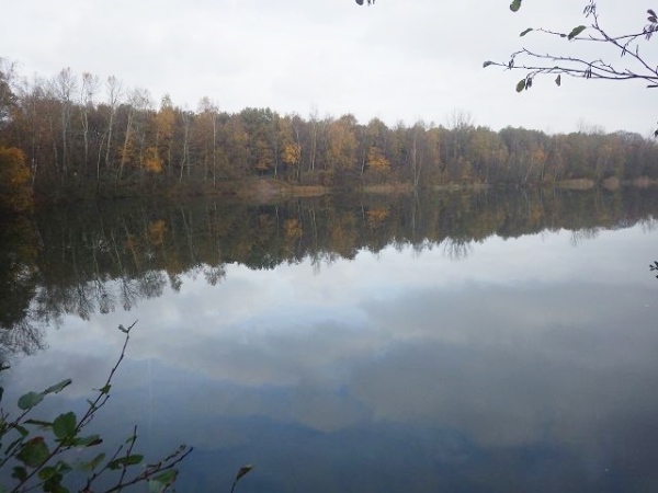 Die nächste Verpflegungsstelle ist am Heidhof, wo es wieder warmen Tee gibt. Danach geht’s zu einem sehr schönen See, dem Heidhofsee, der durch Kiesabbau entstanden ist. Im Wasser spiegeln sich die bunten Bäume, eine wunderschöne Herbststimmung, fast wie aus dem Bilderbuch.