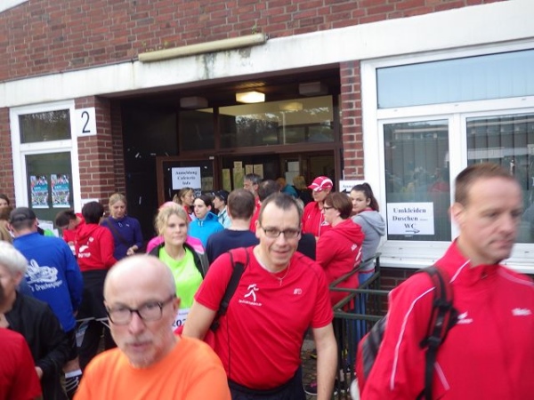 Für mich hieß es wieder mal früh aufstehen und ohne Frühstück losfahren. Aber das ist hier nicht so arg, weil der Veranstalter dafür gesorgt hat, dass man vor Ort noch schön gemütlich und dazu recht preiswert frühstücken kann, was ich nach dem Abholen meiner Startnummer auch direkt gemacht habe. Bei der Rückgabe der Startnummer, die den Zeitmesschip enthält, bekommt man zudem 3 € zurück, was im Ziel genau für eine Currywurst reicht. Die köstliche Wurst ist für mich fast schon wichtiger als die schön gestaltete Medaille.