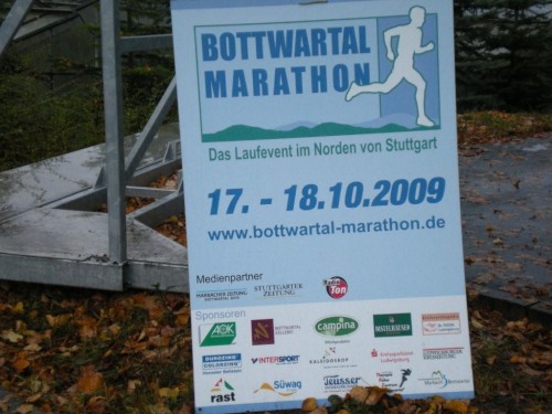 Eine weitere solche kennenzulernen, ist mein heutiges Ziel. Ein weiteres Mal in diesem Jahr führt mich der Weg in den Großraum Stuttgart, ein weiteres Mal in ein Weinbaugebiet. Das Viertele überlass ich den Weintrinkern und den gestern zum 10 km Bottwartal-Kellerei-Herbstlauf Gestarteten und trete auf der ganzen Distanz an, zum Bottwartal Marathon, obwohl ich auch die Halbdistanz bestreiten könnte (entweder auf der Nord- oder der Südschleife). Aber wenn man schon so Vieles falsch macht, sollte man dies nicht nur halb machen…