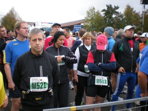 Bei der Gepäckaufbewahrung treffe ich (wieder) Nicole und Jochen. Die Beiden sind auch überall dabei, wenn zum Marathon und mehr gerufen wird. So falsch kann es also nicht sein, was ich mache. Wobei, erinnere ich mich nicht schwach an den Ausspruch „Nur weil andere es falsch machen, heißt das nicht, dass es deswegen richtig ist!“?