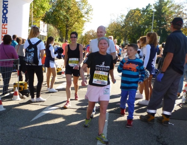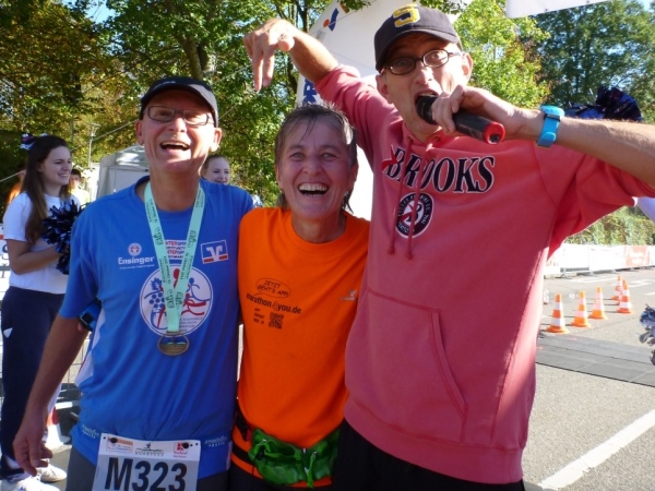 Beim Ultra würde ich mir mehr Läufer wünschen. 87 Ultras im Ziel sind eigentlich ausbaufähig. Aber eer hier nicht mitmacht, versäumt echt was. Knapp hinter mir kommt dann Katrin, der Frischling auf dem Ultra, ins Ziel. Sie ist drittbeste Frau. Do gugget se, die Zuschauer und ich auch.
