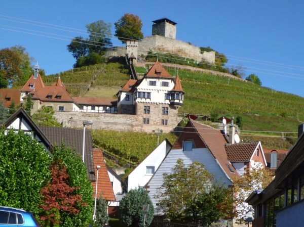 Der Ort Beilstein gehört dann wieder in den Kreis Heilbronn. Dominiert wird das 6000 Einwohner zählende Weinstädtle von der Burg Hohenbeilstein, die um 1070 erbaut wurde. Heute steht die Burg im Besitz der Stadt. Betrieben werden da oben eine Falknerei und eine Gaststätte. Auf halber Höhe zwischen Stadt und Burg befindet sich das Untere Schloss, gleich daneben die Burgkelter. Praktisch, weil der Wein nach der Lese gleich mittels Kraxe in die Kelter getragen werden kann, kurze Transportwege.