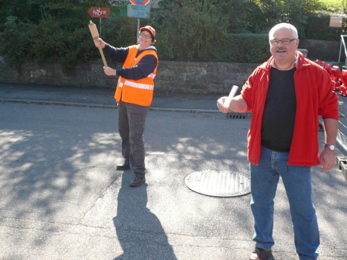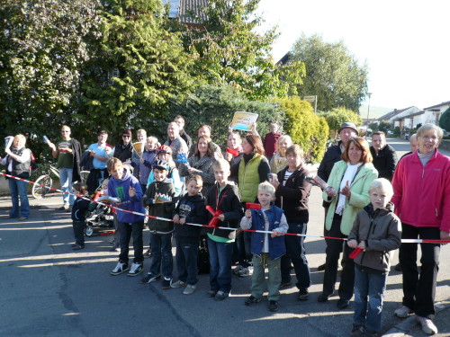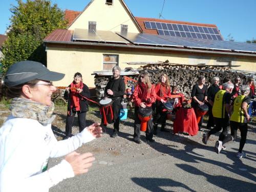 Wir erreichen kurz darauf Hof und Lembach, wo uns die ersten Zuschauer bereits begeistert empfangen. Eine Trommlergruppe entlässt uns auf den Weg nach Oberstenfeld. Hier werden wir von Zuschauern, die beinahe an jeder Kreuzung stehen, empfangen. Mit rockigen Klängen heißt uns die Band Superwiser willkommen.