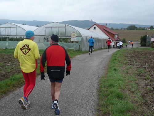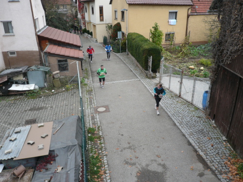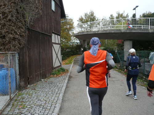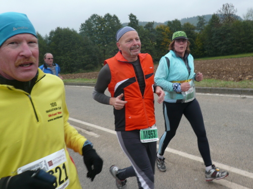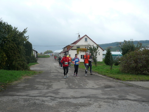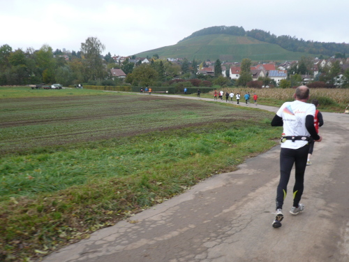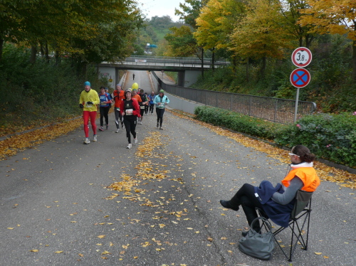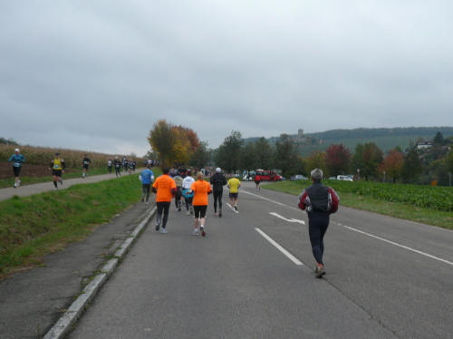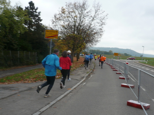 Kurz vor Gronau machte die Strecke eine Rechtskurve und brachte uns wieder Richtung Norden nach Beilstein, wo wir wenig später zum endgültig nördlichsten Punkt der Strecke kamen. Da hier für ein kurzes Stück Begegnungsverkehr herrschte, konnte ich einige Läufer, die mir entgegenkamen, ablichten.