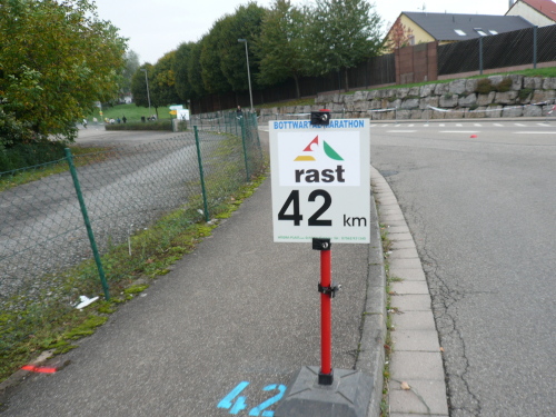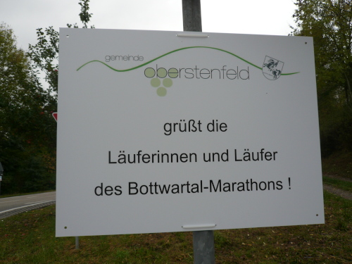 Der Bottwartal-Marathon ist hervorragend organisiert. Von der Anmeldung bis zur Startnummern-Ausgabe lief alles problemlos ab. An den zahlreichen Verpflegungsstellen gab es Wasser, Tee, Iso, Bananen und Energieriegel. Später auch Cola.