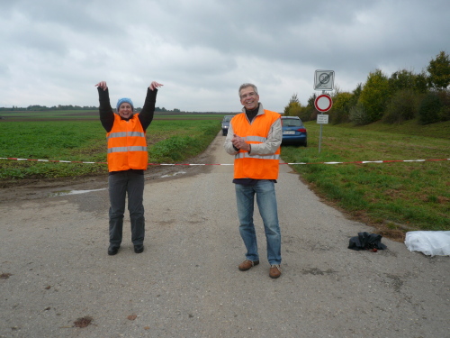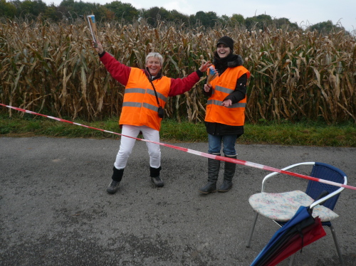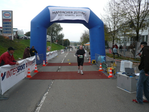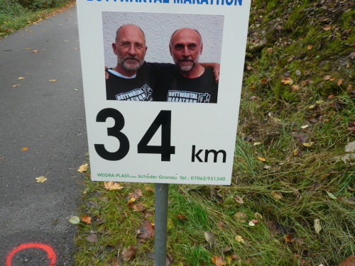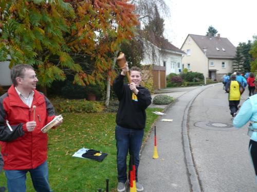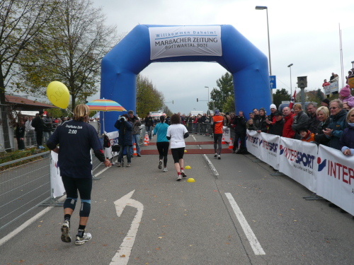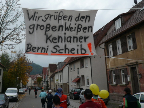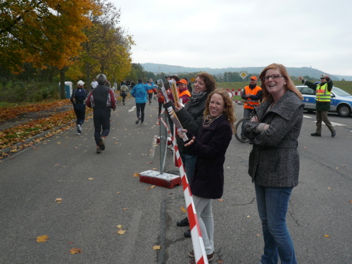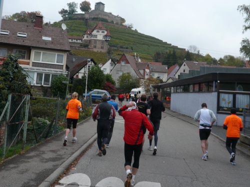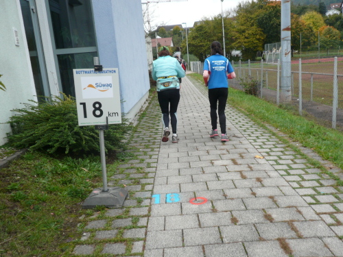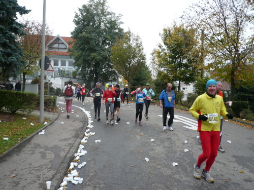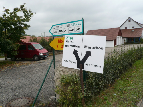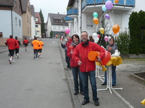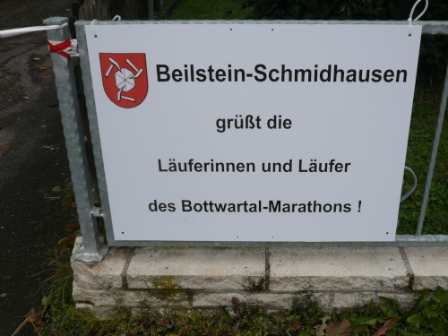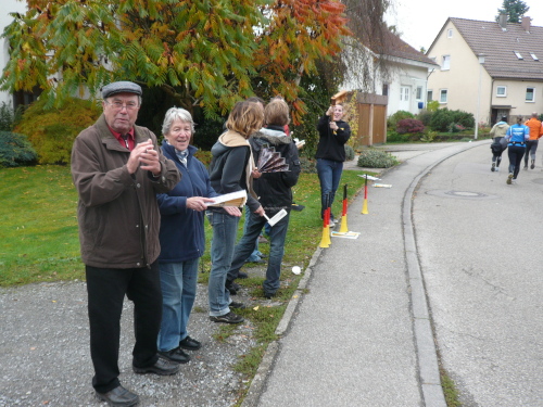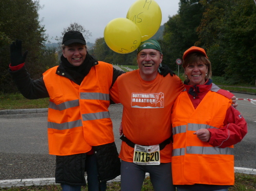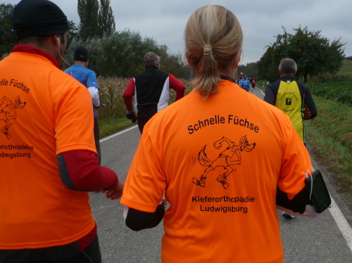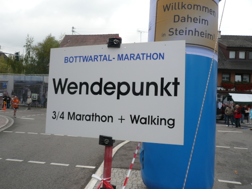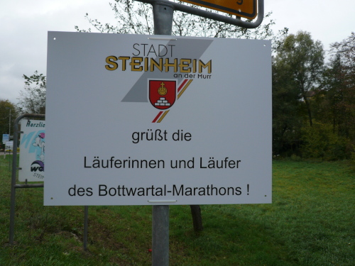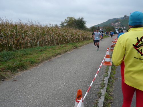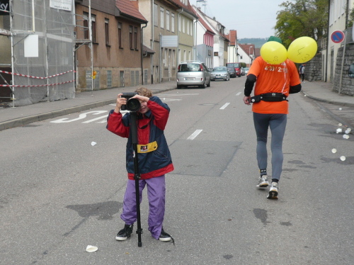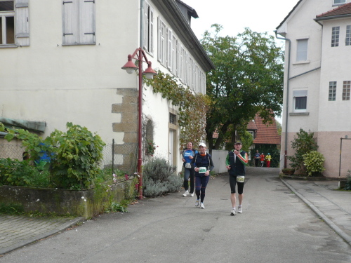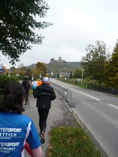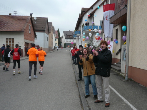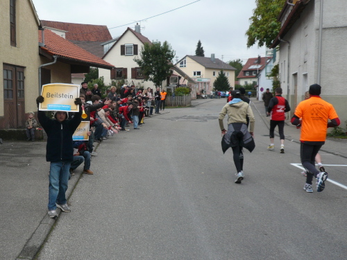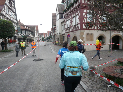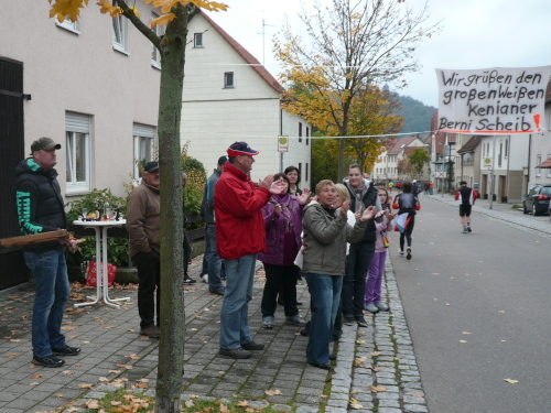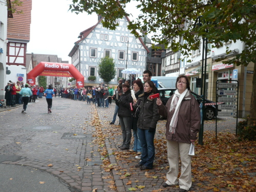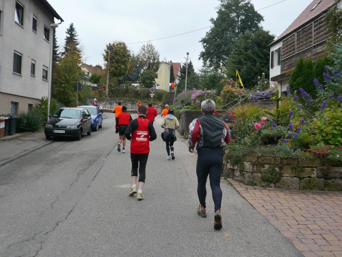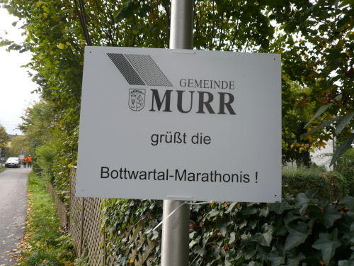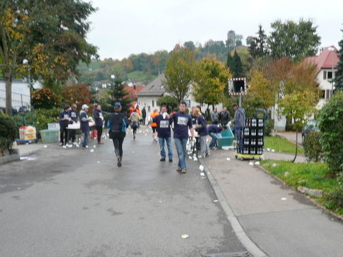 In einer großen Schleife kamen wir anschließend wieder nach Murr, wo die Zuschauer noch immer begeistert feierten. Auf dem Rückweg begegneten wir den Nordic Walkern, die dieses Jahr später auf die Strecke gelassen wurden. Durch diese Maßnahme gab es im Gegensatz zum letztjährigen Marathon keinen Engpass in Steinheim und Kleinbottwar.