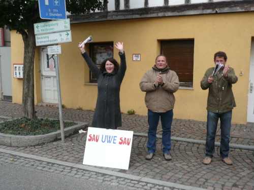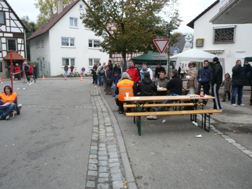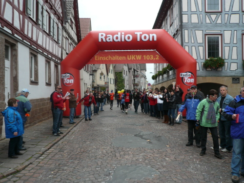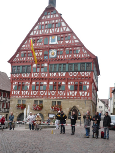 Ein kurzer Schwenk durch die schöne Altstadt von Großbottwar und am Rathaus vorbei brachte uns auf eine Begegnungsstrecke nach Kleinbottwar. Der etwas winklige Verlauf der Strecke schadete unserem Tempo und unserer Stimmung nicht. Von vielen Zuschauern am Streckenrand angefeuert, verließen wir kurze Zeit später Kleinbottwar.