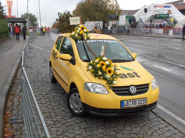 Mich führt die kurze Stadtbesichtigung durch den Stadtkern und dann zur Bottwartal-Kellerei. Dort ist an beiden Tagen das Kellerfest. Ideal ist es für die Organisation, sich da dran zu hängen. So kann gleich die Infrastruktur für Verpflegung, Start- und Zielgelände mitbenutzt werden.