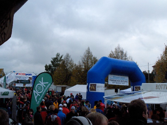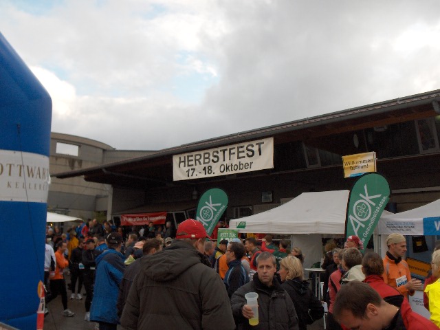Ich hole mir die Startunterlagen und das bestellte Veranstaltungs-Shirt, welches Funktionsqualität hat. In der Tüte befindet sich neben weniger Werbung von Sponsoren auch ein paar praktische Sachen einer Apotheke. Ich packe noch ein paar Ausschreibungen dazu, mache mich davon und erkunde das Startgelände mit den Ablagemöglichkeiten der Kleidungstaschen, Verpflegungsmöglichkeiten, Toiletten und dergleichen.