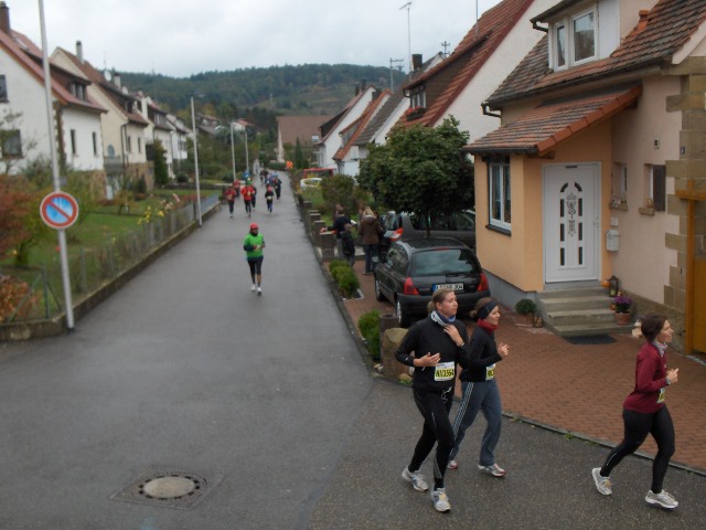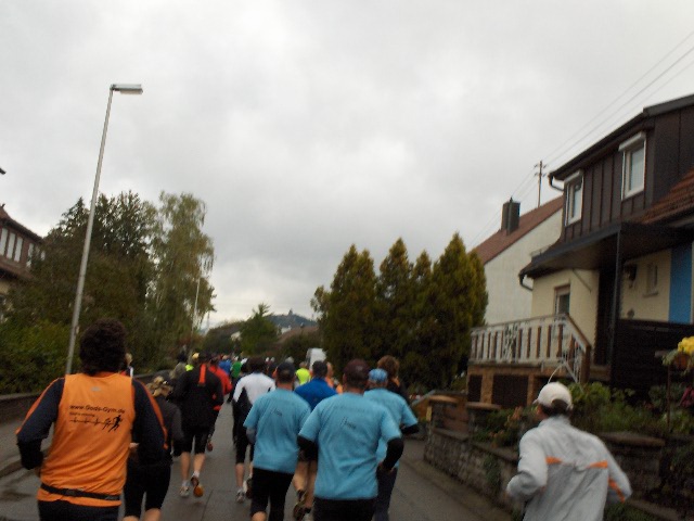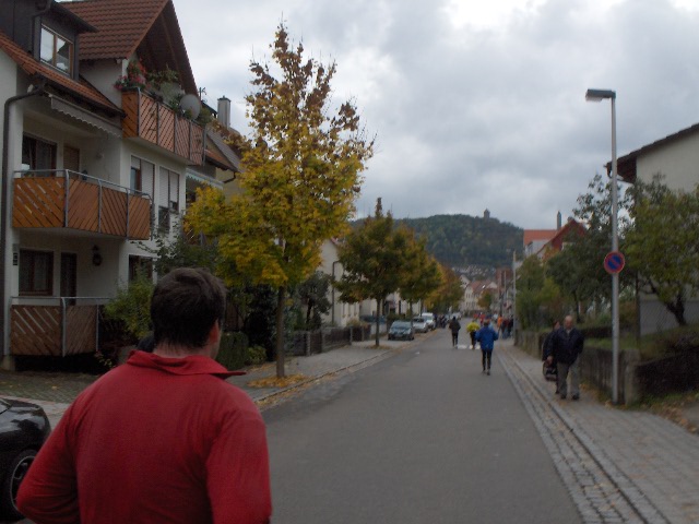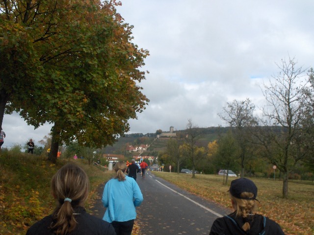 Auf dem weiteren Weg sieht man rechterhand die Burg Lichtenberg, das Wahrzeichen im Bottwartal. Die Staufer haben die Burg im Mittelalter als Befestigung erbaut. Weiter geht’s nach Oberstenfeld, wo wir durch Wohngebiete mehrere Kilometer absolvieren. Bei Kilometer fünf kontrolliere ich die Zeit und merke, dass ich immer noch schneller als die avisierten 4.15 Minuten pro Kilometer bin. Also noch einen Tick defensiver. Schuld am hohen Tempo sind die Halbmarathonis. Die können dann am Ende der Nordschleife für heute Feierabend machen.