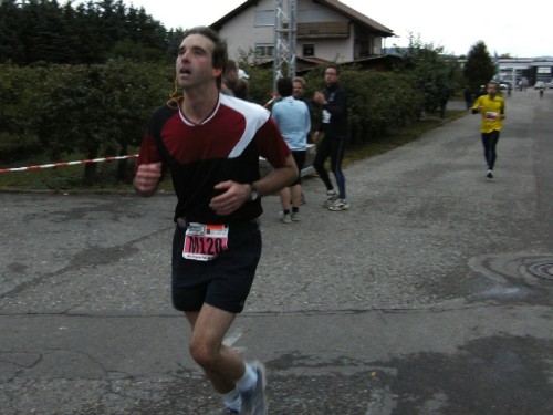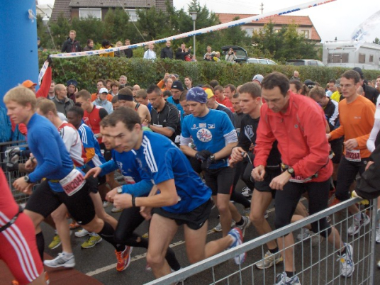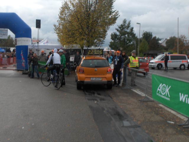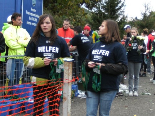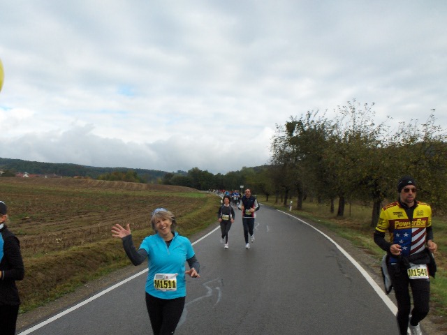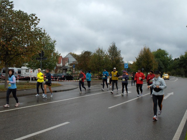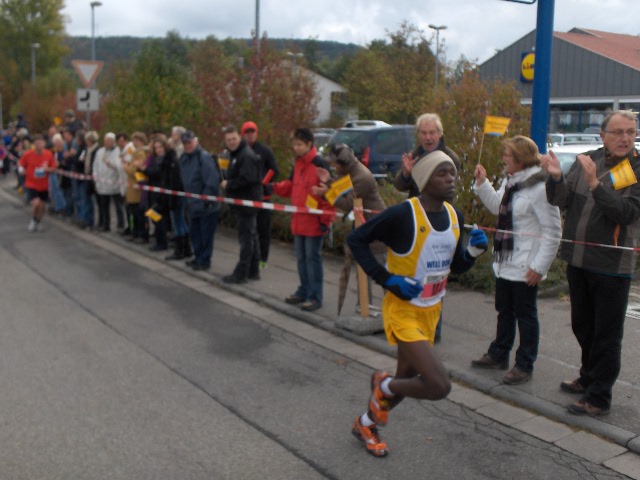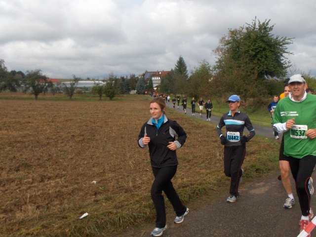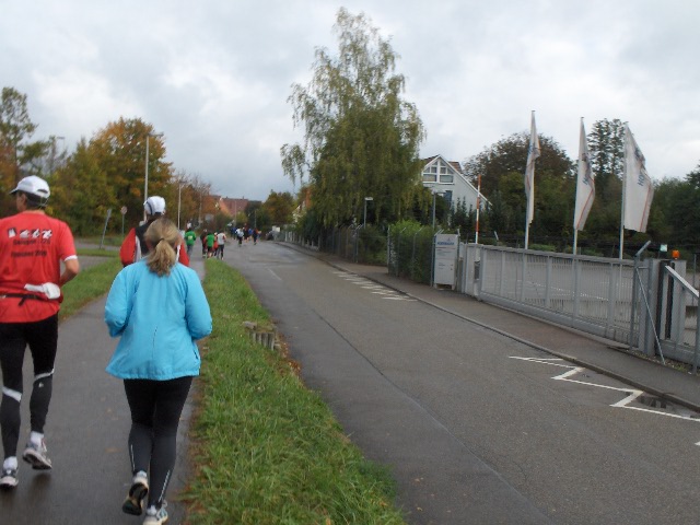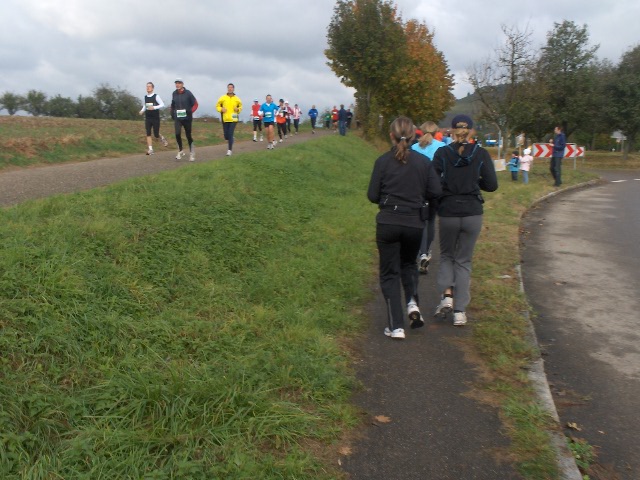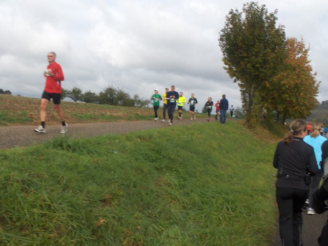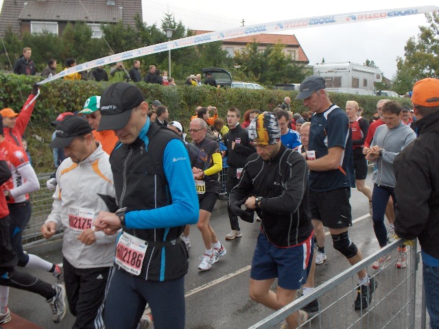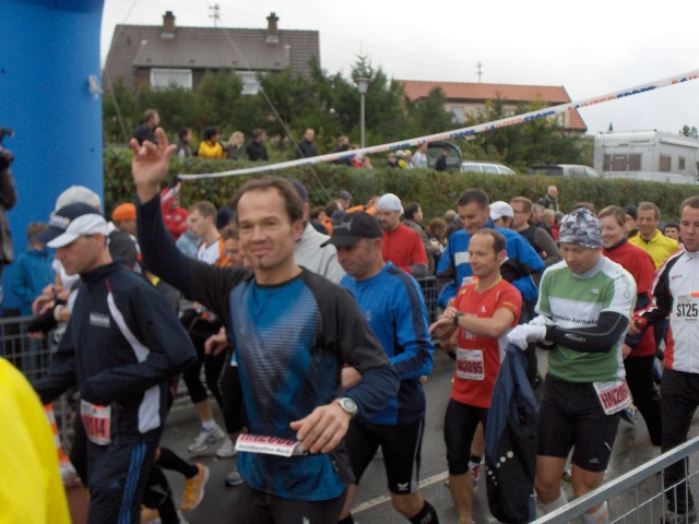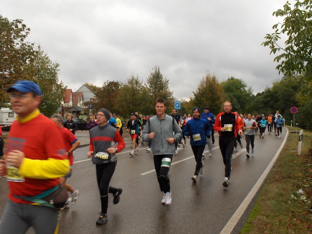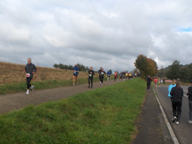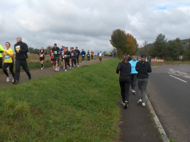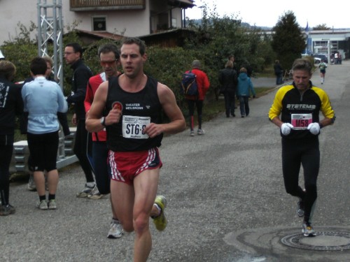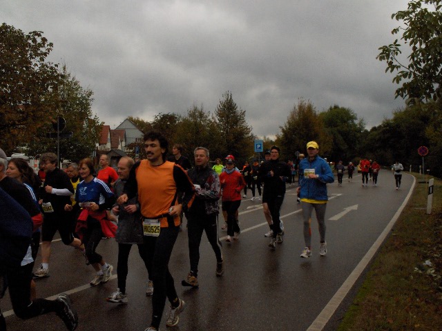 Die Meisterschaftsteilnehmer sind anhand der Startnummer erkennbar. So tragen die Marathonis die Nummer ab 100. Der weitaus größere Teil des Läuferfeldes hat hier „Flasche leer“, denn sie sind am Ende. Natürlich mit dem Rennen! Der Trend ist hier wie anderswo genau der gleiche. Die Motivation durch den Marathon wirkt bei mir wie Adrenalin, denn ich kann fast mühelos auf zwei vor mir Platzierte auflaufen und mich auch von denen leicht lösen.