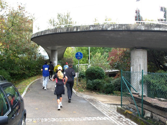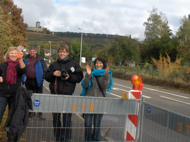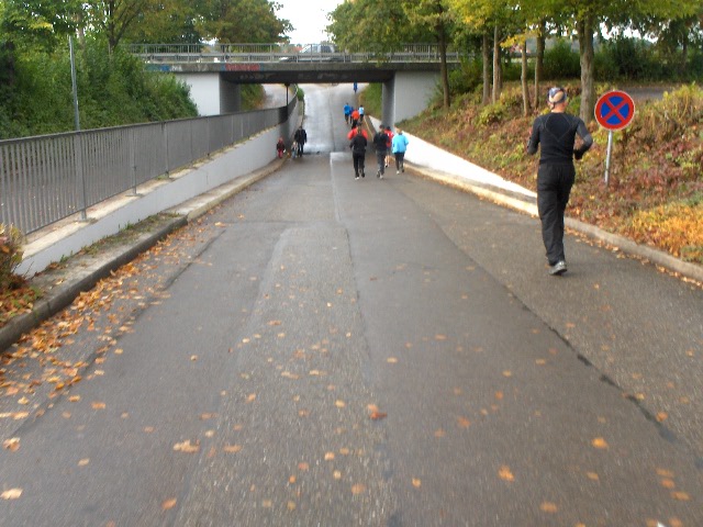 Wir verlassen Beilstein und es geht in die Natur. Auf dem geteerten Radweg neben einer Landesstraße mache ich Tempo, da die Tendenz für einen Kilometer leicht fallend ist. Es geht wieder hinein nach Oberstenfeld. Gute Stimmung. Eine Hauptstraße wird auf einer Brücke überquert. Um die Höhe zu erreichen, laufen wir mehr als einen Kreis nach oben und auf der anderen Seite nach unten. Da bekomme ich fast einen Drehwurm.