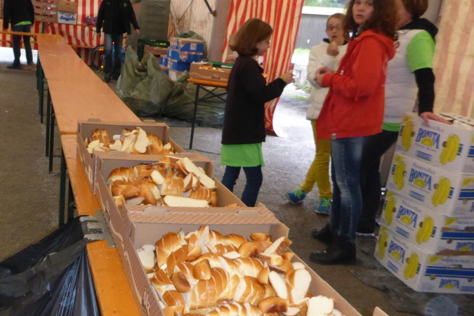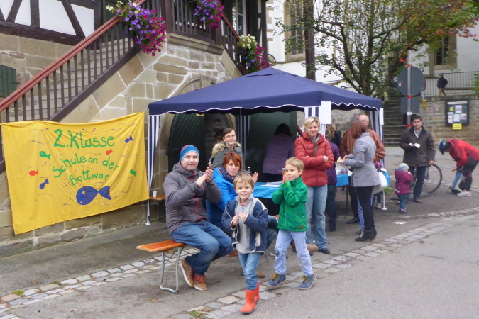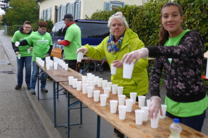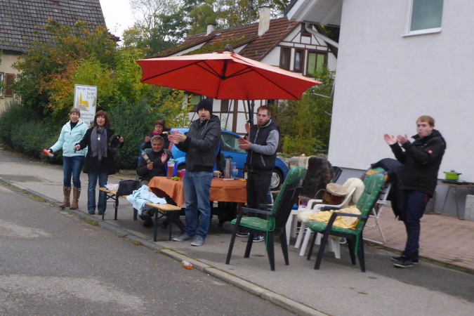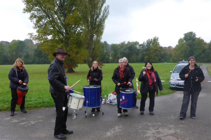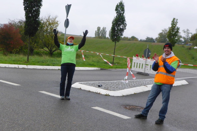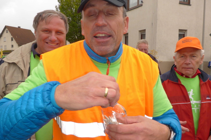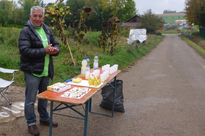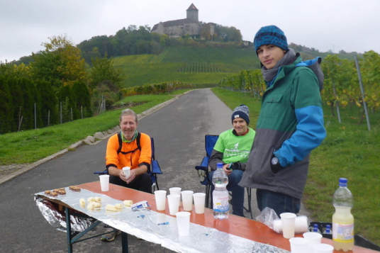 Eine Percussion-Band ist, obwohl nun nicht mehr viel los ist, unentwegt bei der Arbeit. Uns macht das Spaß – vielen Dank. Unterwegs treffen wir Constantin. Er ist erst 15 Jahre alt und läuft den ¾- Marathon. Leider zwingen ihn Krämpfe zum Gehen. Wie ich weiß, läuft seine Mutter heute ihren ersten Marathon. Sicher wird sie im Ziel bereits auf ihn warten. Beim Bottwartal-Marathon ist eben, wie anfangs erwähnt, für jeden etwas dabei.
