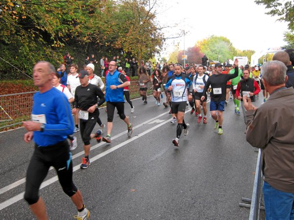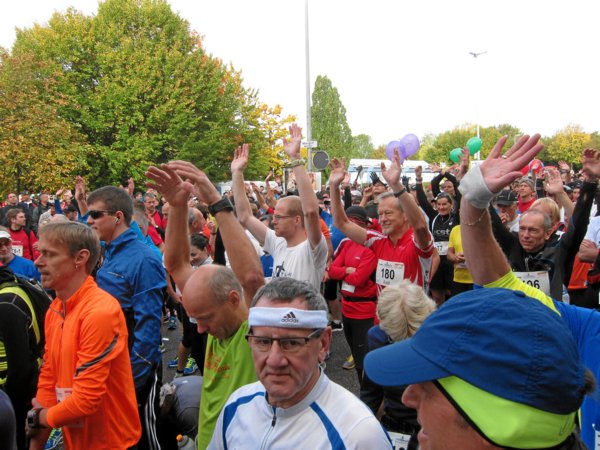 Der Halbmarathon wurde 90 Minuten nach dem Marathon in Gronau im Norden der Strecke gestartet, die Teilnehmer mit Bussen dorthin gebracht. Da aber die Startunterlagen nur in Steinheim ausgegeben wurden, bevölkerten die 1.500 ebenfalls Halle und Gelände. Angenehmer Nebeneffekt, beim Start des Marathons säumten sie unsere Strecke.