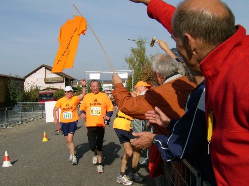 Auch die anderen Bergheider erreichen alle das Ziel in den angepeilten Zeiten. Mit Bernd Thülig können wir beim Marathon sogar einen zweiten Platz in der M70 feiern. Ja, es ist wohl wie beim Wein, je älter desto besser. Er erhält als Anerkennung einen schönen Pokal und eine Weinkiste.