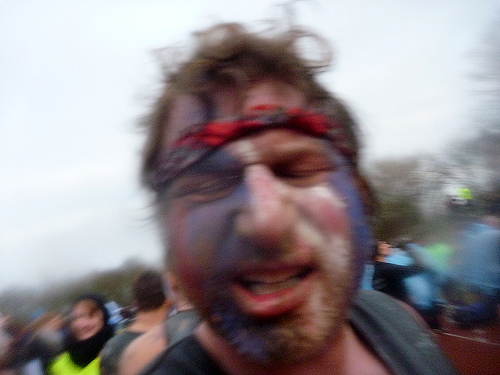 Noch nie in meinem Leben habe ich einen Lauf erlebt, wo es mehr Verluste gab. Meine Knie sehen aus wie bei einem Siebenjährigen. Meine Unterarme, als sei ich 17. Mein Rücken als sei ich 80. Also bin ich im Durchschnitt 21. Und deswegen habe ich diesen Lauf genmacht. Ich bin übersäht von Wunden, blauen Flecken und juckenden Schnitten. Das Atmen fällt mir schwer, weil meine Brustmuskeln jaulen, wie ein schlecht geölter Kolbenmotor. Und aufs Klo werde ich mich nie wieder setzen können. Habe ich aber noch nie gemacht, weil ich schon immer ein Braveheart war.
