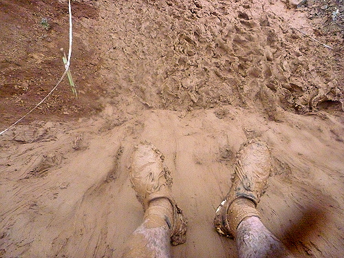 „Heartbreak Ridge“ ist ein sehr steiler rupppiger Pfad durch dichtes Gestrüpp mit schlammigem, glitschigem Waldboden. Dornen peitschen mir auf die wunden Schienbeine.