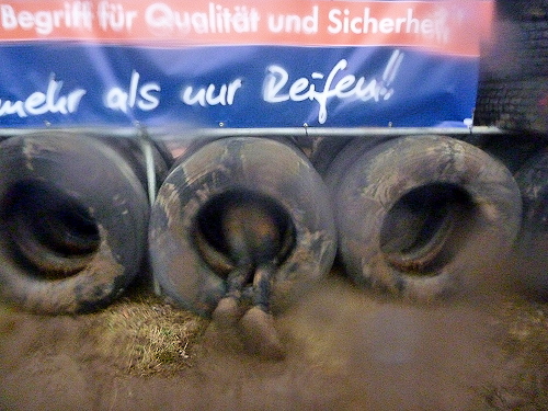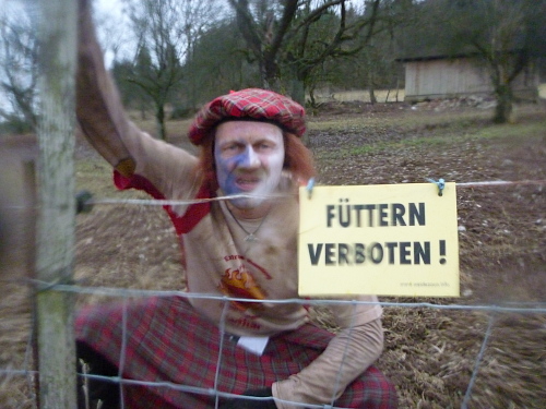 Letztes Jahr war danach Frieden. Jetzt stehen da zwei Container voll mit Pferdejauche. Ein Brett steckt senkrecht darüber und erzwingt einen Tauchgang. Mit offener Fresse stehe ich da, das kann nicht sein! Nun war der Gogo vor mir in der Drecksjauche und hat sicherlich seinen Senf dazugegeben. Jedenfalls bekomme ich eine geschmacklich nach Eisen, Pferd und Ziegenkäse schmeckende Brühe zu schlucken, nur weil ich meine Kamera retten will. Holt mich hier raus! Ich bin ein Star!