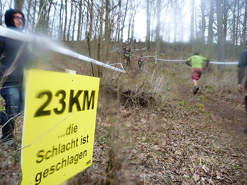 Ich habe viel erlebt, hier und heute und überhaupt. Jetzt lerne ich wieder das Beten. Dass sich die Jungs hier ungelogen die Eier abreissen, sieht man nicht. Die schreien nur und wälzen sich dann im Unterholz. Aber als der Zwanzigjährige neben mir im Höllenspeed den Hang runtergeschossen kommt und sich auf dem Weg nach unten sein Unterschenkel blitzschnell in einen rechten Winkel von seinem blutendem Körper begibt, da wird mir verdammt schlecht. Ich würge wie ein junger Hund, der eine Plastikdose Rügenwälder verdrücken will.