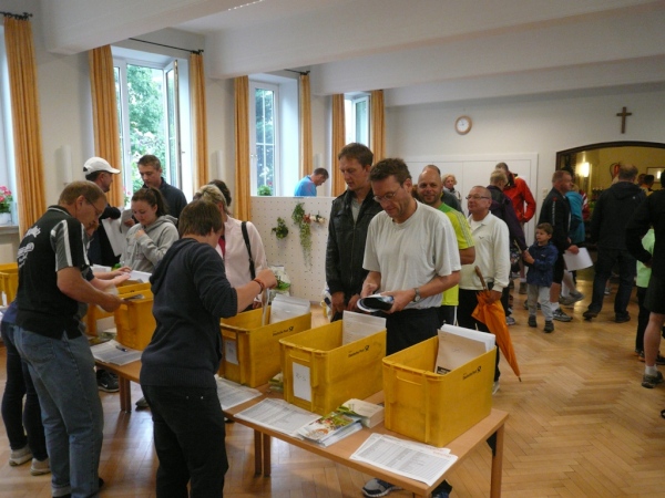 Rund um den Start- und Zielbereich neben der Kirche beginnt ab 9 Uhr so richtig der Betrieb. Viele Eltern, Großeltern, Onkel und Tanten wollen ihre Kleinen um 9:30 Uhr bei ihrem Wettkampf sehen und bewundern. Anschließend kommen die „großen“ Renner hinter dem Start- und Zielbogen zusammen. Zwischen den vielen Läufern ist auch ein Paar mit dem Shirt Aufdruck „Braut“ und „Bräutigam“, dazu mehr auf der Strecke.