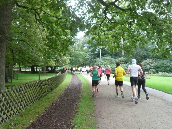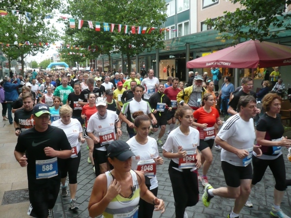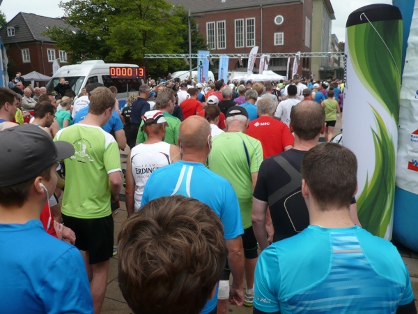 Ein Blick zur Kirchturmuhr, es ist 10 Uhr. Das große Feld der ungefähr 900 Läufer/Innen macht sich auf den Rundkurs. Um 16.00 Uhr muss der Letzte im Ziel sein. Das heißt, Marathonis haben 6 Stunden Zeit.