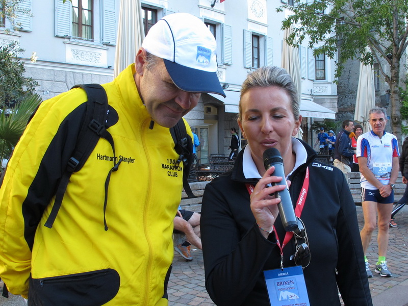 Bei der Anreise durch Österreich regnet es und es ist kühl. Ideales Reisewetter. Auf dem Brenner wird’s dann hell und 42 km weiter südlich, in Brixen, scheint die Sonne. Ab 13.00 Uhr gibt es am Freitag die Startunterlagen im Brixen Forum. Ich hole sie mir und fahre gleich weiter, hinauf zur Plose, wo ich auf halber Höhe im The Vista Hotel (1680 m) mein Quartier habe. Ein Glücksgriff, denn die Lage ist mit dem herrlichen Blick auf die Geislerspitzen und auf den Peitlerkofel einmalig, das Essen erstklassig und der Komfort mit Hallenbad, Whirlpool und Sauna hervorragend. Sportlich ist man auch. Christian Jocher, der Initiator und Chef-Organisator des Brixen Dolomiten Marathon gibt hier Seminare und der Hotel-Chef, Reinhard Oberrauch, will den Marathon mitlaufen, verletzt sich aber (beim Heimwerken!) und muss sein Debüt verschieben.