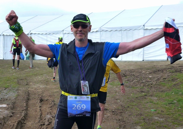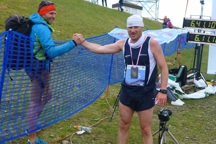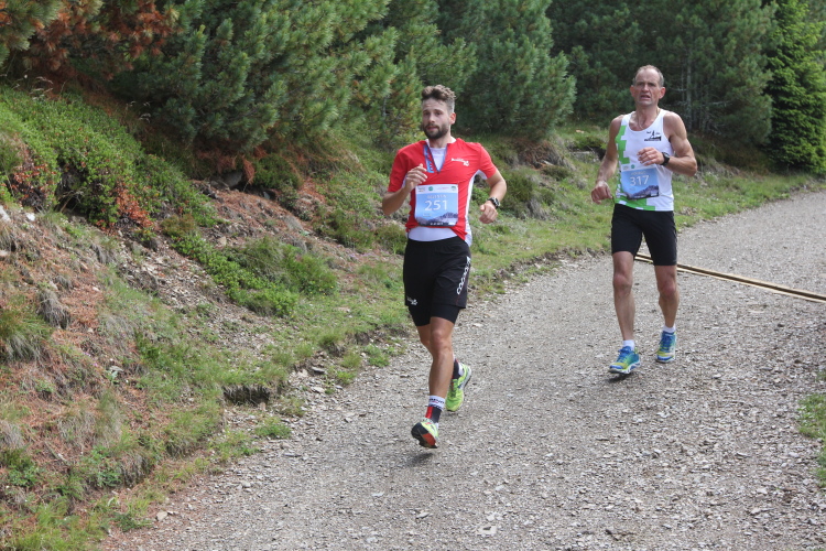 Der letzte Kilometer führt leicht bergab. Und dann noch um die Plosehütte herum. Ich schreie den Läufer vor uns an, er solle jetzt nicht schlapp machen, sonst werde er überholt. Und wieder feuert uns der zünftige Lederhosenträger mit dem thüringischen Akzent an, der mit seinen Bierflaschen schon mehrmals an der Laufstrecke stand. Dann das Ziel.