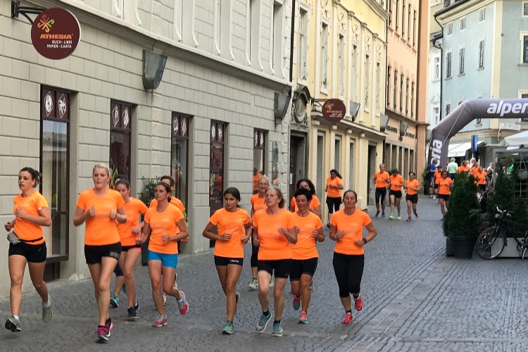 Dort tummeln sich viele Damen in orangefarbenem Shirt. Diesmal nicht die M4Y-Farbe, sondern das „Womens Run“-Equipment. Zweimal gilt es die Altstadt zu durchqueren. Warum fast alle Läuferinnen schwarze Hosen tragen, konnte ich nicht klären. Immerhin tanzte ein Fünfergrüppchen in silbernen Hotpants aus der Reihe. Nach 4,2195 Kilometern geht es auf dem Platz mit einer Zumba-Party weiter. Wir Marathonis halten uns an die Erzeugnisse, die der Nudelstand zu bieten hat.