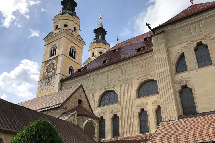 Am Domplatz liegen vier Kirchen. Wir fangen bei der Besichtigung mit der Stadtkirche Sankt Michael an, deren weißer Turm ein Wahrzeichen Brixens ist. Dann in die Kathedrale: Mariae Aufnahme in den Himmel und St. Kassian. Bischofssitz von Bozen-Brixen, bis 1964 der Bischofssitz nach Bozen verlegt wurde. Interessant die klassizistische Vorhalle aus dem Jahre 1788, deren Stil so gar nicht zu den beiden Türmen passt. Angeschlossen die kleine Frauenkirche, in der Maria Magdalena verehrt wird. Auf den vielen Votivtäfelchen finde ich eine gestickte Danksagung: „Danke Grazie Maria“ - zweisprachig ist nie verkehrt.