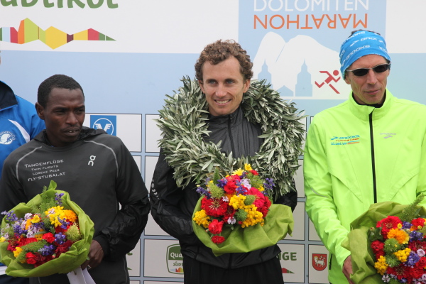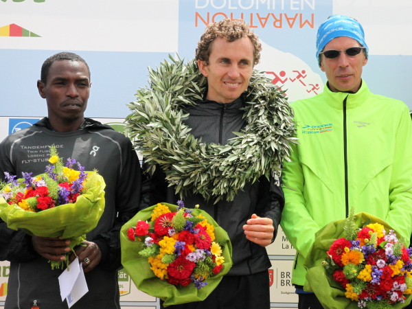 Das ist jetzt aber nicht das Thema. Bisher wurde der Brixen Dolomiten Marathon von der einheimischen Läuferelite dominiert und meist von Hermann Achmüller und Edeltraud Thaler gewonnen. 1000 Euro Siegprämie reichen heute aber aus, um Profis wie den Berglaufweltmeister (Kurzdistanz) Petro Mamu aus Eritrea an die Startlinie zu bringen. Um welches Kaliber es sich dabei handelt, beweist der 2. Platz beim Jungfrau Marathon im letzten Jahr, bei dem Petro Mamu keinen geringeren als Viktor Röthlin hinter sich gelassen hat. Auf Einladung eines Sponsors trainiert er ganz in der Nähe und kann die Siegprämie gut gebrauchen.