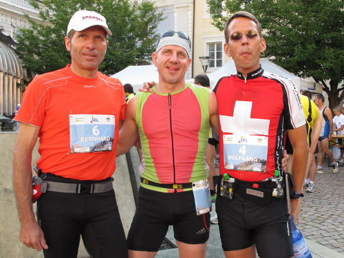 Wer Applaus und Jubelstürme braucht, um auf Touren zu kommen, hat Pech, denn das Publikumsinteresse hält sich in Grenzen. Die Leute haben anderes zu tun, nehmen den ersten Espresso des Tages, holen das Frühstückbrot oder halten einen Tratsch. Und uns läuft nach 1000 Metern schon der Schweiß. Auch der Schatten am Eisackufer kann nicht darüber hinweg täuschen – es ist schon jetzt zu warm.