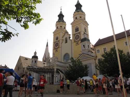 Mit über 350 Anmeldungen (Marathon und Staffel) bei der Premiere ist man sehr zufrieden. Man denkt langfristig. Die Startunterlagen und ein köstliches Nudelgericht bekommt man im Tagungs- und Kongresszentrum Forum Brixen, das auch noch bei einem weitaus größeren Läuferansturm ausreichend ist. Start ist auf dem Domplatz, mitten in der überaus sehenswerten Altstadt.