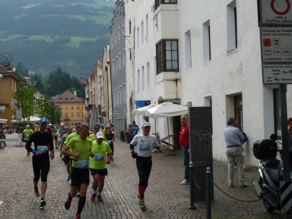 Doch was macht den besonderen Reiz gerade dieses Marathons aus? Da ist natürlich zum einen die grandiose Optik, die die wildgezackten Dolomitengipfel entlang des Trails bietet, und die Tatsache, dass man, wie nur bei wenigen Bergmarathons, ein echtes Gipfelfinish erleben darf. Aber es ist auch das ganze Drumherum, etwa die stimmungsvolle Pasta-Party mitten auf Brixens Hauptplatz. Fürstlich versorgt man auf dem Weg ins Ziel. Achtzehn Mal kann man bei Speis und Trank innehalten, um die acht Stunden, die man sich für die Bewältigung der satten 2.340 Höhenmeter bis zum Gipfel Zeit nehmen darf, auszukosten. Und das idyllische Brixen selbst trägt natürlich auch seinen Teil dazu bei, dass sich die Läufer hier besonders wohlfühlen.