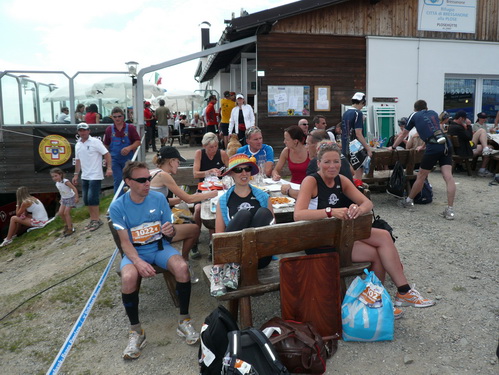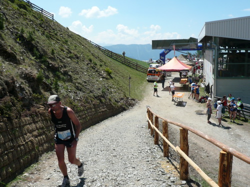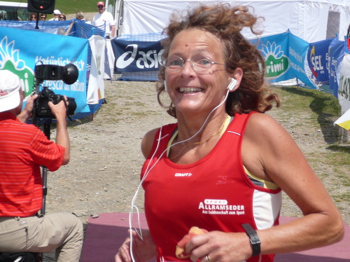 Die Bergstation Kreuztal (2050 Meter) erreichen wir nach knapp 4,5 Stunden Laufzeit. Kiloemeter 33,5. Es wird wohl knapp mit der Flower Ceremony, denn es warten noch 450 Höhenmeter und eine unbekannt Strecke, die in der Ausschreibung als alpiner Steig ausgewiesen wird. Die Staffeln wechseln hier zum letzten Mal.