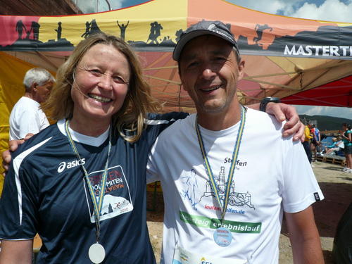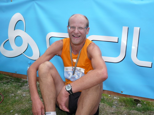 Gerade noch rechtzeitig komme ich ins Ziel. Die Flower Ceremony musste eine halbe Stunde nach hinten verschoben werden. So kommt der Klaus doch noch zu seinen Siegerbildern, auch wenn ich damit nicht mehr gerechnet habe. Als Auszeihchnung erhalten die Finishter Medaille und ein schickes Funktionsshirt eines namhaftes Herstellers.