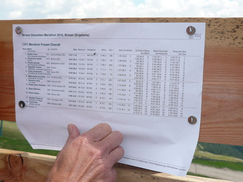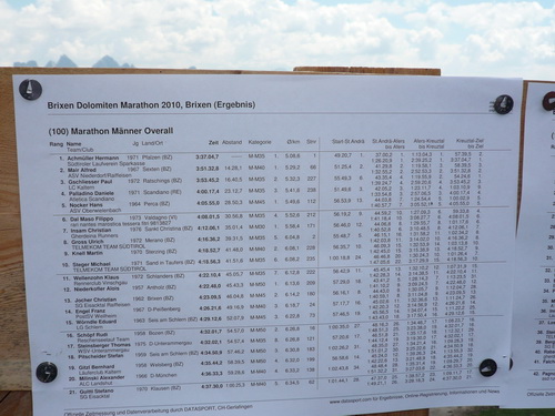 Ein harter Lauf bei ungewöhnlich warmen Temperaturen. Für mich war dieser Event genauso schwer wie der diesjährige Graubündner. Gut organisiert, die Helfer sind zahlreich und aufmerksam. Der Brixen Marathon verdient und verträgt deutlich mehr Teilnehmer. Die Ausblicke im Ziel auf die Dolomiten sind gigantisch.