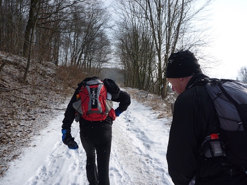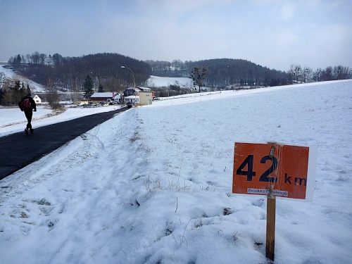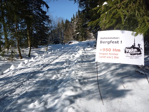 - 13 Grad, Schneegriesel. Stirnlampe an, los gehts. Kalt, mir ist so kalt. Auf den ersten sechs Kilometern keine Markierungen, also dranbleiben. Doch! Fackeln markieren den Weg bis Mackenrode. Kann nicht atmen, ist es zu kalt? Eher drücken die vielen Zwiebelschalen auf meinen Brustkorb. Und ein wenig äh ja, Respekt. Nein, ich habe Schiss, und der klebt mir die Bronchien zu.