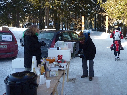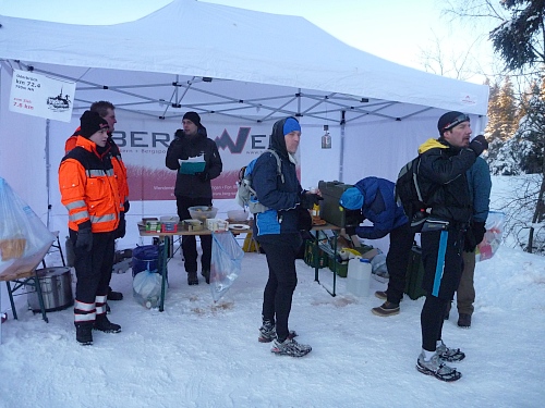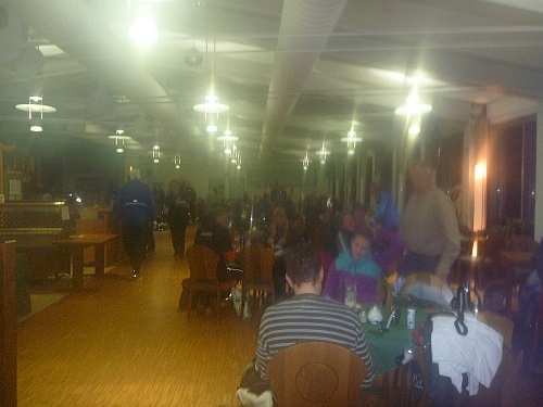 Super Buffet im Goethesaal. Erbsensuppe, dann ist Schluss. Ich kann nicht mehr essen. Zwei Duschen für 150 Leute. Nein, stimmt nicht, denn heute gibt es extrem viele Abbrecher. Und so stehen wir nackt und barfuß in der Reihe, betrachten zitternd offene Wunden, blutrote Zehen und weisse Frostblasen, während benutzte Pflaster und tausend Ultrahaare an unseren Zehen vorbeischwimmen, und warten, bis die Dusche frei wird. Wir sind aber froh über 2 Minuten Dusche, denn unten im Reitstall oder Jägerhaus ist nix. Dann geht es zu Fuß zwei Stunden nach Schierke, um den Charterbus nach Göttingen zu bekommen.