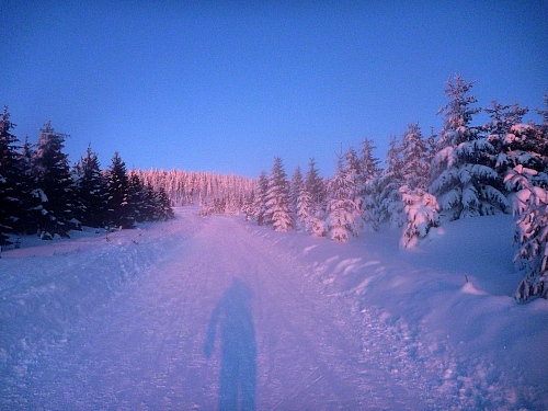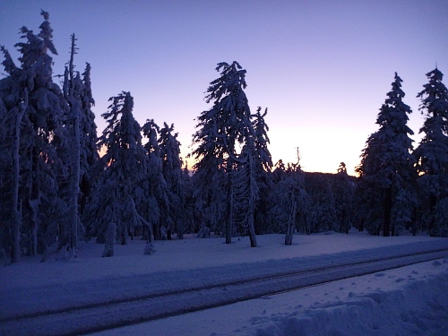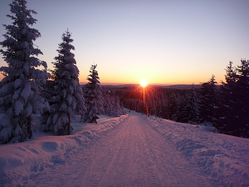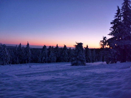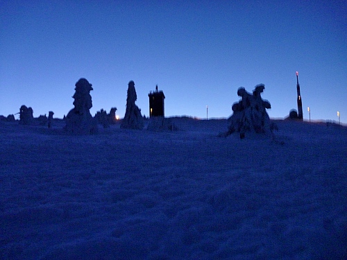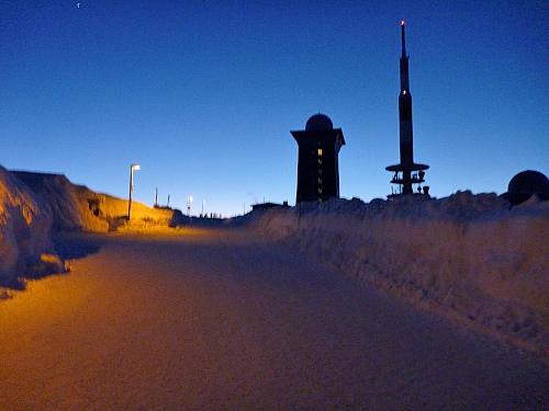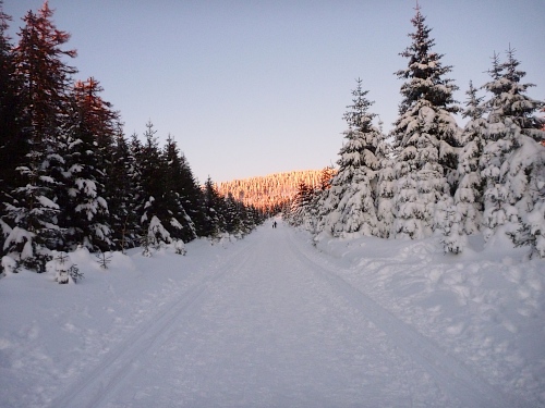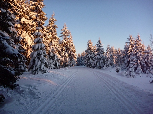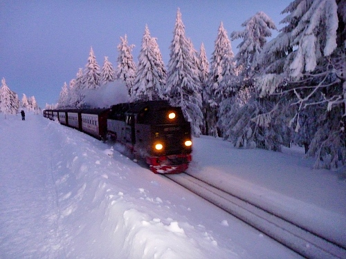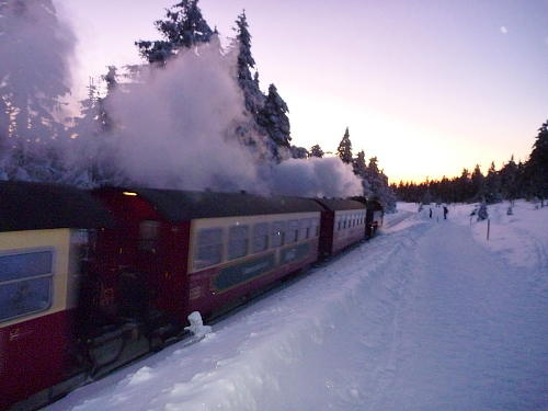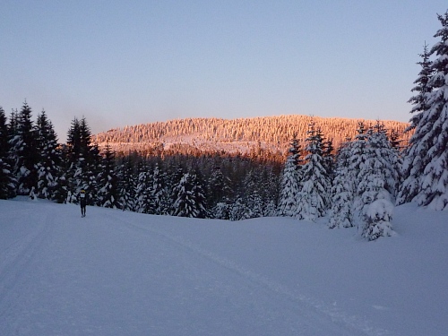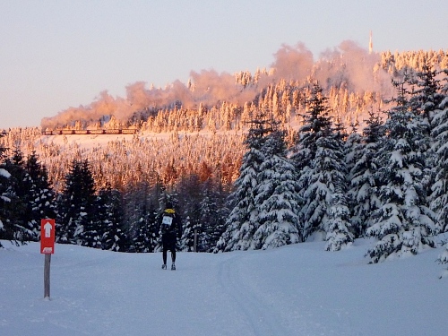 Schierke war lange Zeit ein nicht für jedermann erreichbarer Wintersportort, wegen der innerdeutschen Grenze nur mit einem besonderen Passierschein zugänglich. 11 km bis dorthin, angeblich. Tatsache: Es sind 2 Stunden Fußmarsch durch die klirrend kalte Nacht, samt Gepäck. Dafür ein sternklarer Himmel mit Kaskaden von Sternschuppen und eine schöne Lockerung der Beinmuskulatur. Immer noch kommen Läufer den Berg herauf. Ich kann keine Gesichter erkennen. Die Kopflichter schweben langsam über der Eislandschaft zwischen den schneeschwangeren Tannen hindurch. Aufmunternde Worte. Wir sind alle Helden, unbezwingbar. Nur noch wenige Meter für die und zwei Stunden für mich. Dann verlasse ich die Lauftstrecke und überlasse die kalten Halogenscheinwerfer ihrem einsamen Schicksal.
