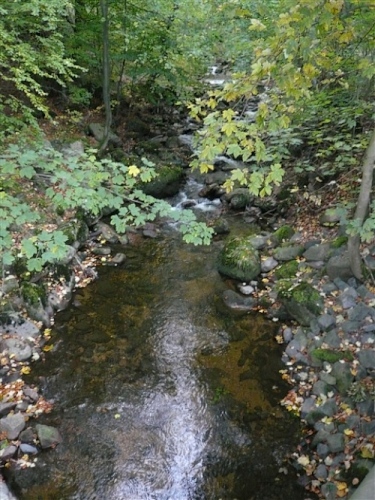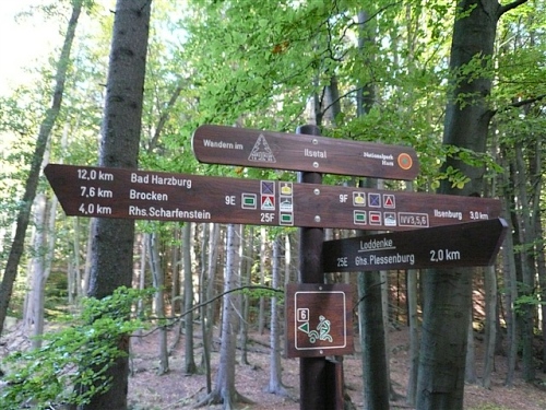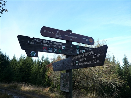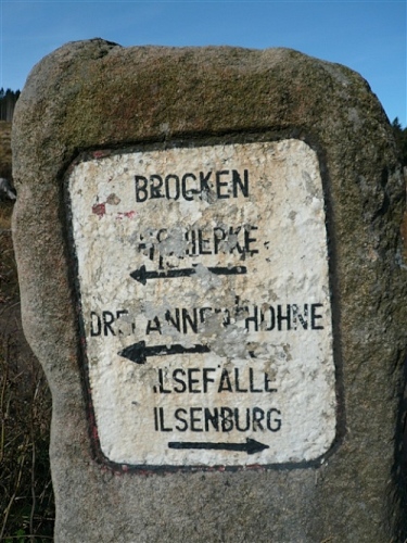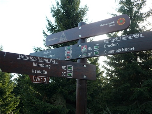 Derart gestärkt und mit weiter steigender Laune folge ich nun dem 10,5 km langen Heinrich-Heine-Weg, den der berühmte Dichter seligen Angedenkens im September 1824 höchstselbst hochgestiefelt ist. Die Ilse, ein attraktives Bächlein, begleitet uns auf den nächsten km. Von wegen „Ilsebilse, niemand willse, kam der Koch, nahm se doch, steckt se in das Ofenloch!“ Der Wald begeistert mich zunehmend, ein richtiger Märchenwald ist es, der da zwischen den riesigen, abgerundeten GesteinsBROCKEN emporwächst. Doch es ist kein Rotkäppchen zu entdecken und auf den bösen Wolf kann ich verzichten, auch wenn wir froh sein sollten, daß auch er wieder eine ökologische Nische für sich entdeckt zu haben scheint. Und auf den gelaufenen erst recht.