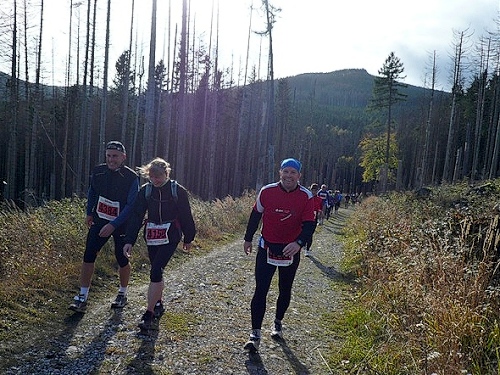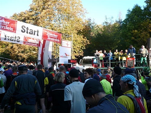 Ein paar Aerobic-Miezen bieten ein gerne angenommenes Aufwärmprogramm an und dann ertönt statt eines Schusses das Startsignal aus dem Jagdhorn. Gleich geht es ein paar Meter moderat nach oben. Ein einziger Blick auf das Höhendiagramm – ein stumpfes, gleichschenkliges Dreieck - legt die Taktik für den Lauf (Rundkurs) fest: Von Wernigerode ist die erste Hälfte lockeres Einlaufen hinauf zum Brocken angesagt, danach Tempobolzen bergab zurück. Oder so ähnlich... Ein Mindestmaß an Einsatz beim Hochlaufen ist aber allerdings, jetzt mal ganz ernsthaft, schon angezeigt, denn auf dem Brocken ist nach 3 Std. Cut Off. Heißt: Wer hier nicht bis um 12 Uhr oben ankommt, ist draußen. Und drei Stunden wollen auch bei „nur“ knapp 20 km, aber über bis dahin 1.000 HM, erst einmal gelaufen sein. Um 15 Uhr ist dann nach sechs Std. Zielschluss.