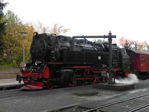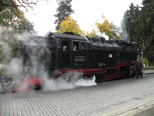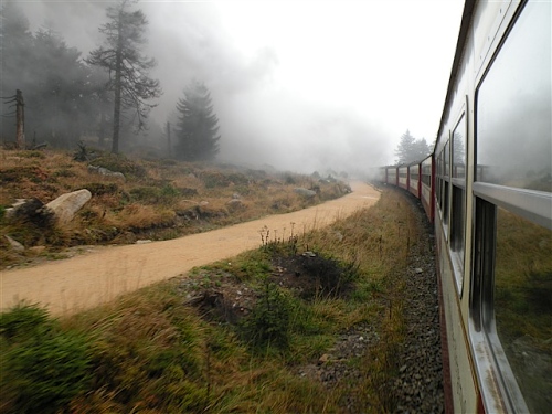 Mehrmals höre ich sie jetzt und sehe manchmal auch weißen Rauch aufsteigen. Nein, ich spreche nicht vom nächsten Konklave, noch hält Benedikt XVI. durch. Ich rede von der Brockenbahn, die als hauptsächlich touristisch genutzte, mehrspurige Schmalspurbahn von Drei Annen Hohne (542 m ü. NN) über Schierke (688 m ü. NN) zum Brocken führt. In Drei Annen Hohne wurde Stadtkommandant Oberst Petri am 11. April 1945 standrechtlich erschossen, da er die Stadt den Amerikanern befehlswidrig kampflos übergeben hatte und sie somit vor der Zerstörung bewahrte. An meinem Geburtstag, allerdings 61 Jahre vorher, wurde die Brockenbahn 1898 eröffnet. Seit 1961 (Mauerbau) führte sie durch militärisches Sperrgebiet (idealer Horchposten zum nahegelegenen „Klassenfeind“) und wurde hauptsächlich durch die NVA und die sowjetischen Besatzungstruppen genutzt. Nach Demilitarisierung und Renaturierung der Bergkuppe verkehrt sie seit 1991 wieder regelmäßig und befördert Passagiere in gut anderthalb Stunden nach oben.