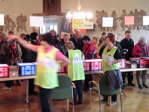 Die Startnummernausgabe erfolgt am Freitag ab 14 Uhr im herrlichen anzusehenden Rathaus, alternativ kann man auch noch am Samstagmorgen ab 7.30 Uhr im Startbereich zuschlagen. Wir sind direkt mit dabei, schauen uns die kleine Messe an und setzen anschließend unsere Stadtbesichtigung fort. Im gegenüberliegenden Café gehen wir auf Nummer sicher und füllen schon mal unsere Fettspeicher auf, schließlich werden diese morgen ja intensiv strapaziert werden.