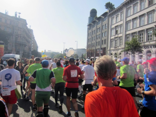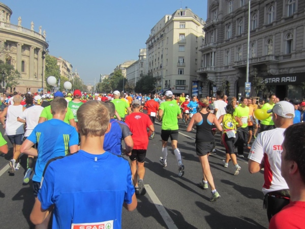 Ich komme mit einem Australier von der Gold Coast ins Gespräch. Er erzählt, dass der Budapest Marathon die letzte Etappe einer mehrwöchigen Europatour ist, während der er an insgesamt drei Marathons teilnahm. Auf welche Ideen die Kollegen kommen – die gleichen Vorhaben habe ich im Herbst 2009 in den USA mit fünf in fünf Wochen und heuer auf der 100tägigen Weltreise mit einem Kreuzfahrtschiff mit sieben Marathons auch umgesetzt.