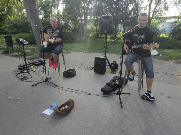 Wieder passieren wir wie auf der gegenüberliegenden Budaer-Seite die schon aufgezählten Brücken, diesmal sehen wir das Parlament zwischen Kilometer 28 und 29 auch von vorne. Ich bin heuer schon etliche Hitzemarathons gelaufen, auch bei den Trails auf den Bergen hatte es oft an die 30 Grad, nur so schlapp war ich schon lange nicht mehr. Wenn man bei Kilometer 30 schon 3:30 unterwegs ist, geht sich eine sub 5-Stunden Zeit nur schwer aus: Dessen bin ich mir bewusst und überlege, ob ich mich für morgen in Graz schonen oder die Reserven mobilisieren soll. Bei der Labestelle Nr.7 schlucke ich erneut ein Gelpäcken, nur bleibt die erhoffte Wirkung aus. Die Musikkappelle wird von den müden Läufern nicht beachtet. Abgesehen vom Startbereich ist das Publikumsinteresse entlang des Kurses eher gering, nur an den Stellen für die Staffelübergabe haben sich Zuschauer und Angehörige von Läufern eingefunden und feuern die Teilnehmer an.