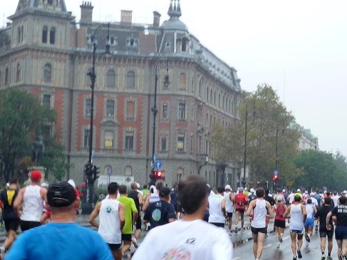 Etwa 1,5 km misst der erste Wendekursabschnitt, dann sind wir zurück an der Andrássy út und uns erwartet nach 4 km die erste der mehr als ein Dutzend Verpflegungsstellen entlang der Strecke. Hier gibt es zwar nur Wasser, aber die meisten Läufer sind ohnehin noch frisch.
